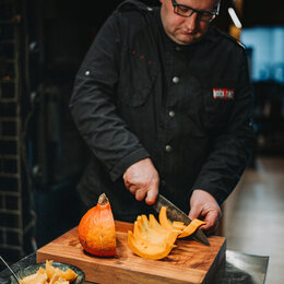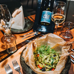 mit Parmaschinken-Chip und hausgebackenem Baguette